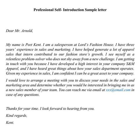 Self Introduction Letter Template